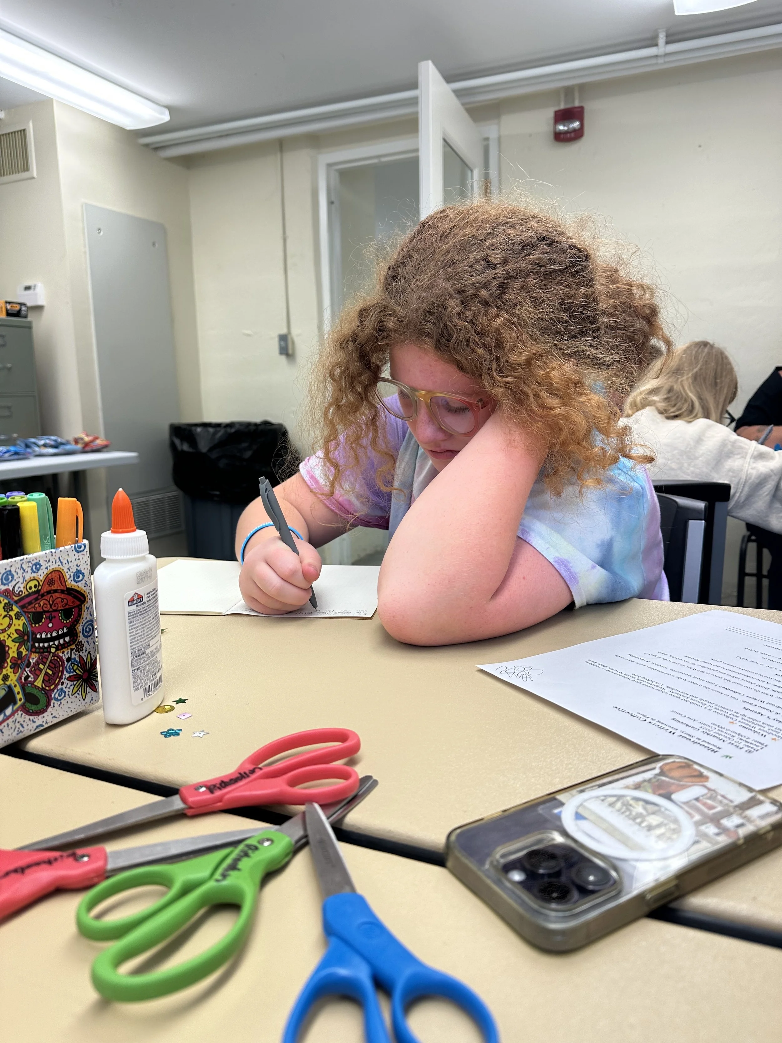 Students work on writing prompts in the RCAC classroom